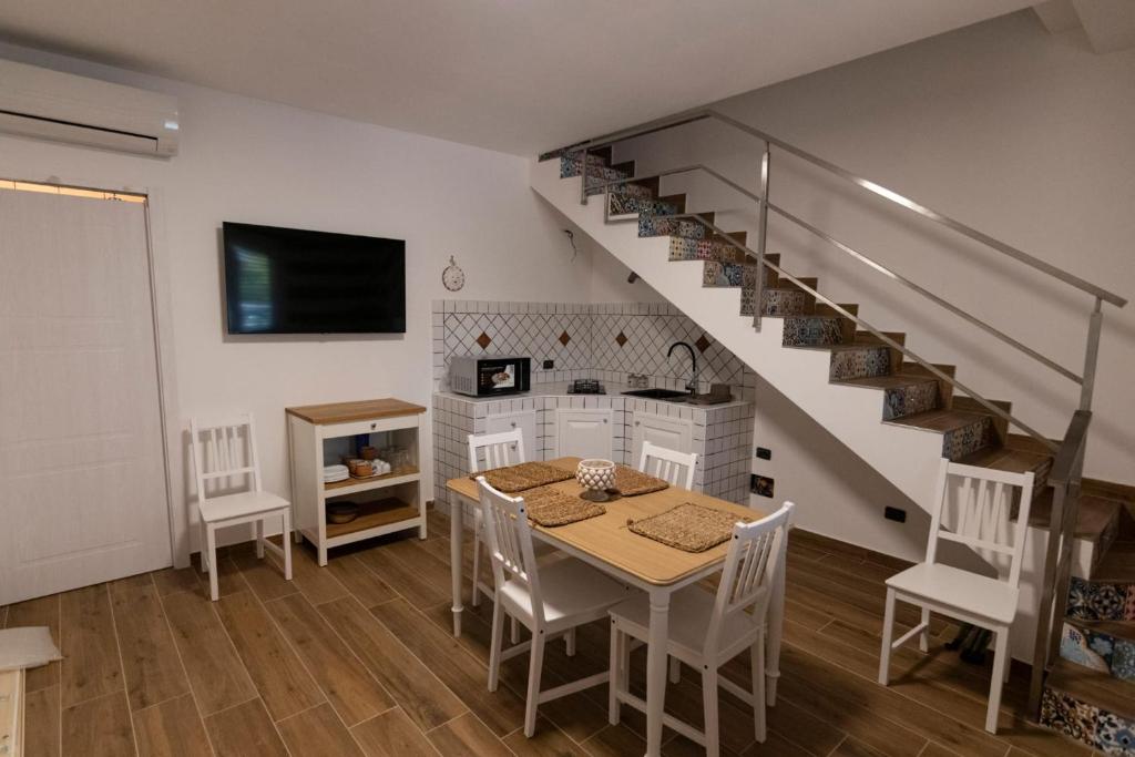 Uno dei punti di forza della struttura è l’ampio terrazzo esterno, perfetto per pranzi all’aperto, momenti di relax al sole o serate sotto le stelle. Questo spazio permette agli ospiti di godere del clima piacevole della zona e di vivere a contatto con la natura.